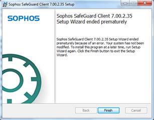 I am getting some of my laptops failing to install the Sophos Safeguard client using the safeguard installation wizard. Typical install which is for full disk encryption only.