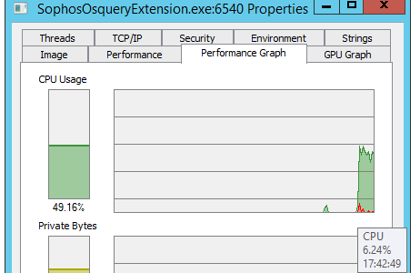2022-03-31T14:29:22.937Z [ 9644: 8204] E Process SophosOsqueryExtension.exe exceeded 30% CPU limit for over: 9 counts