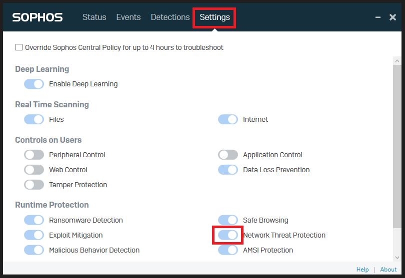 Another possible option to assist your end-users would be to leave Tamper Protection disabled on that specific device from Sophos Central, though this may not be ideal. You could then advise the end-user to navigate to the following UI.