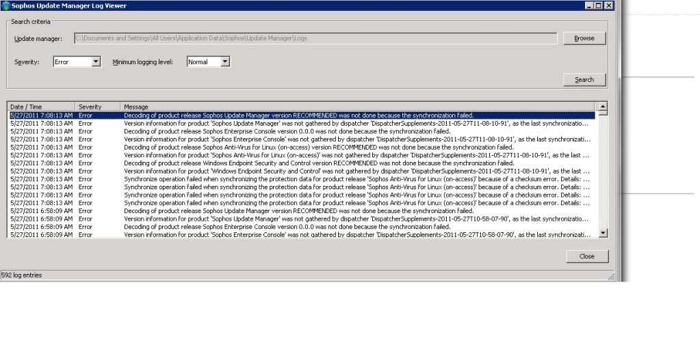 First of all, please check the subscription if it looks correct or has any weird content (like here). If it does look ok stop the management service, empty the Warehouse and also delete SUM_status.xml and specialactions.xml . Start the service and instruct SUM to update. You already know how and where to look and what to post (the LogViewer screenshot is no longer needed) if there's again an error .