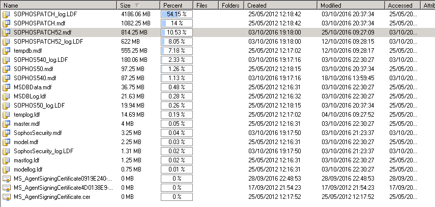 I have found there are multiple LDF and MDF files in the C:\Program Files\Microsoft SQL Server\MSSQL10.SOPHOS\MSSQL folder.