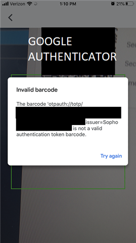 Seems to only work with the Sophos Authenticator. Google Authenticator and DUO do not recognize the QR code