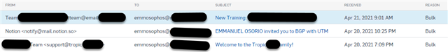 Your quarantine messages will show and the reason, the most common reasons you’ll see are SPAM and Bulk (Bulk email are usually, emails sent from Newsletter you subscribe to).