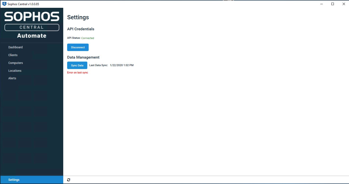 Sophos Central Plug-in Version Number (From Plugin Manager): v1.0.0.85