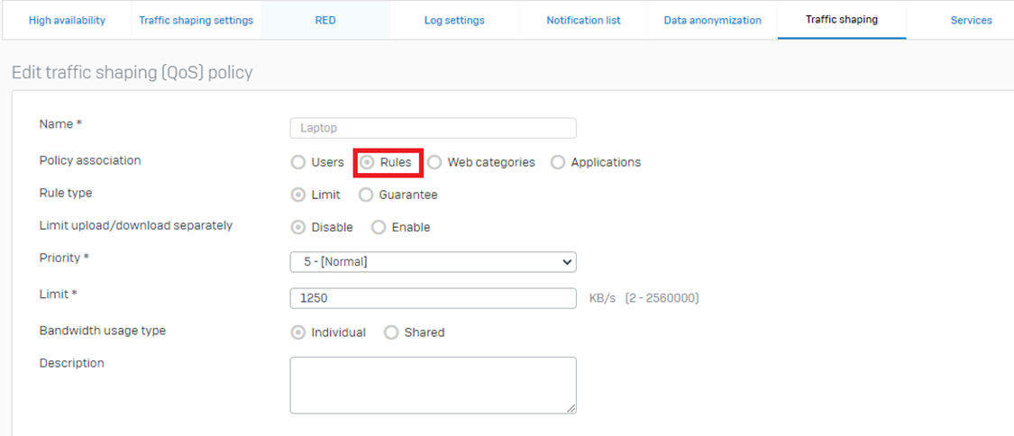 Step1: Trafic-Shaping Policy