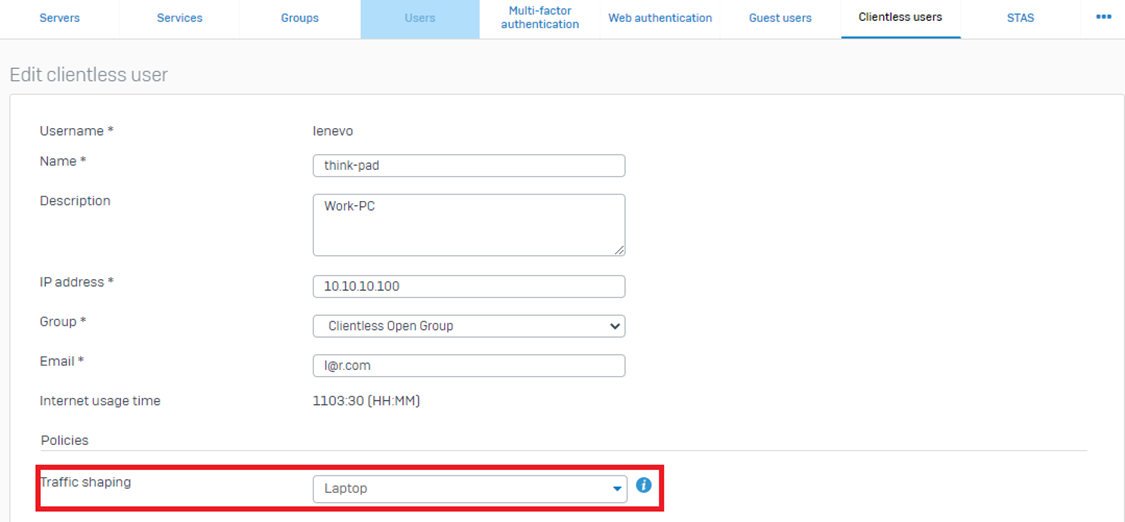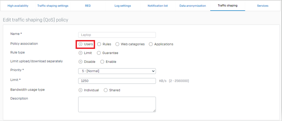 Under Traffic> Policy association, Click Users Radio button.