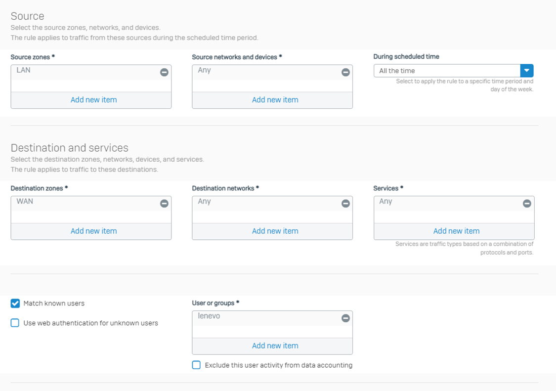 1 user each firewall rule.