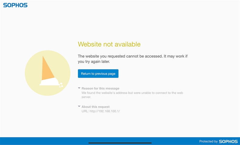 Now the browser is loading for a long time and displays a Sophos error page "Website not available" with reason "We found the website's address but were unable to connect to the web server." afterwards. A telnet on port 80 directly in the advanced shell of the XG isn't working as well.