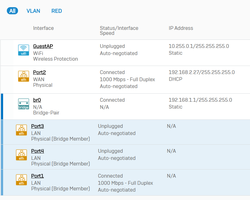 my firewall is setup in route mode. By default, it bridges the LAN port and all spare ports into an interface calls br0. I can not delete this interface since I won't be able to access it anymore.