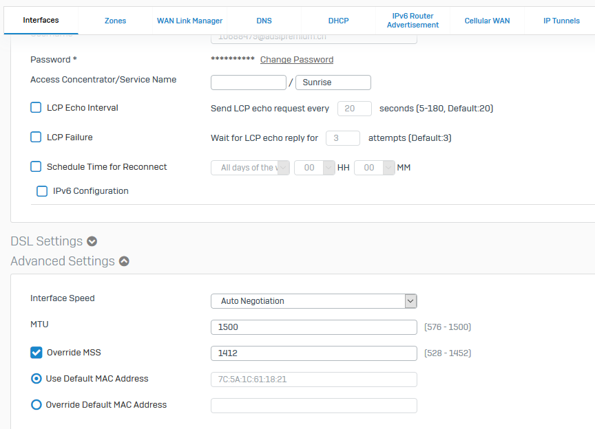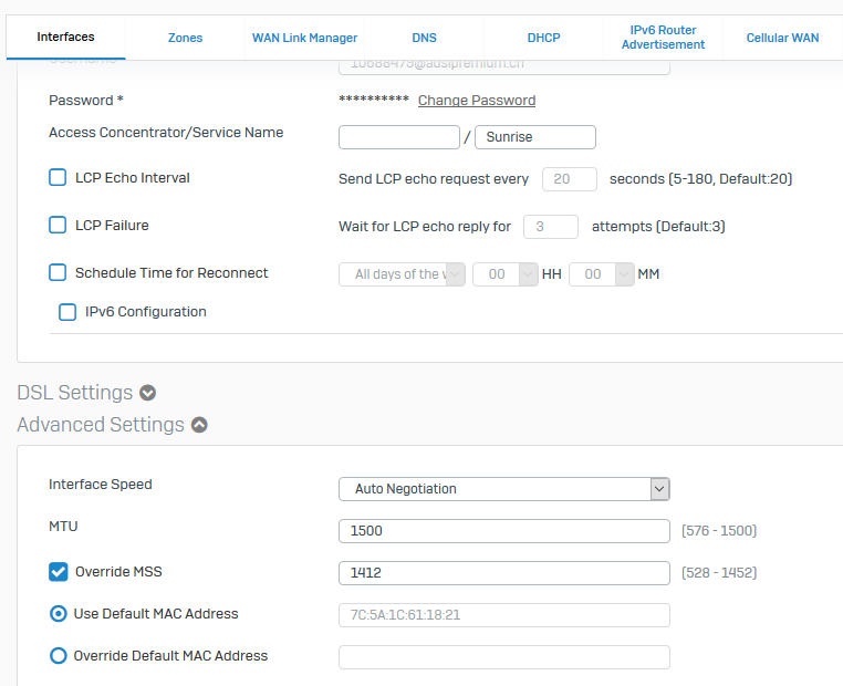 We have it coupled with a modem ZYXEL that acts as a PPPoE with a Fiber Optical line at 100mb/s up and down.