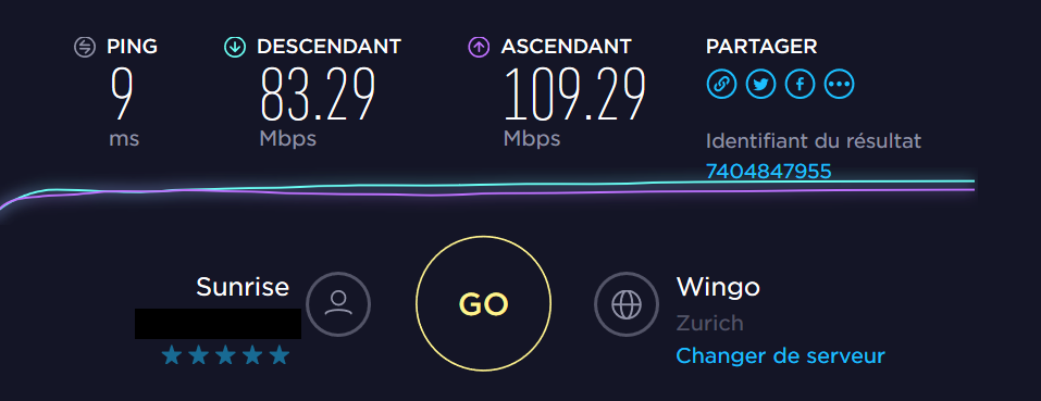 When we test the connection speed with speedtest.net, everything goes fast at 99 mb/s which is perfect.
