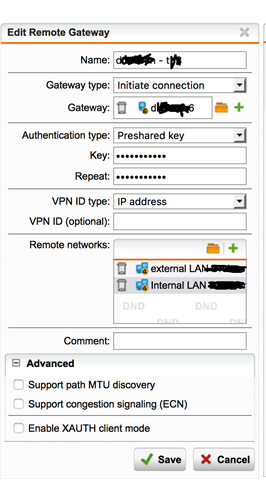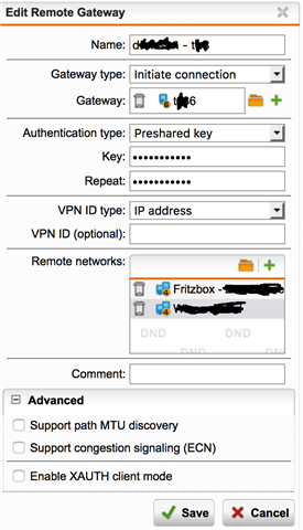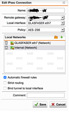 ICh baue die IPSec-Verbindung zwischen den beiden UTMs über eine feste IPv6 auf.