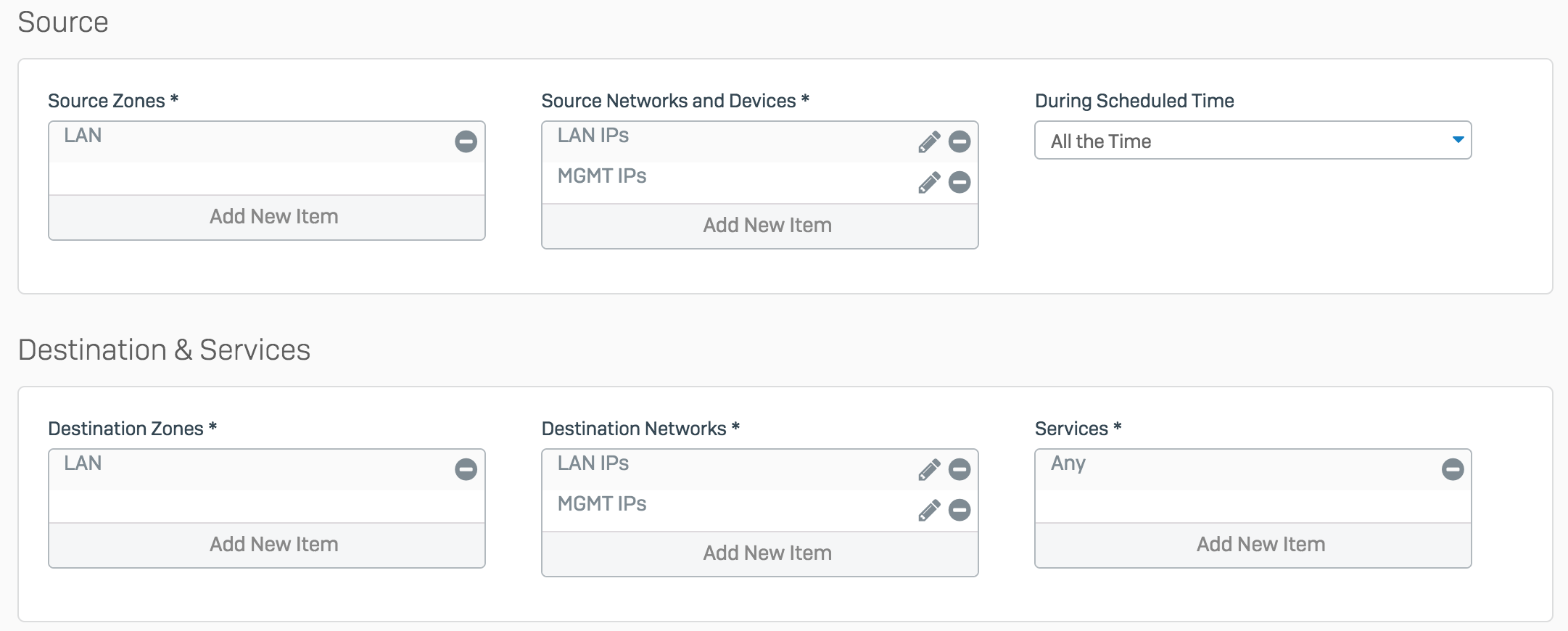 Create a new rule place on top Source LAN; Source Any. Destination Any ; Source Any. Disable match known users and apply no policy for IPS