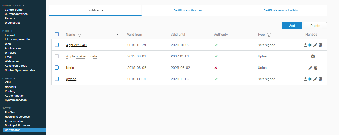 I have a wildcard certificate from Comodo, so i received a package with a certificate.crt / certificate.key and certificate.p7b files. Since its a wildcard i figured i would not have to create a CSR from the XG device. I did add a certificate but it gave me a red cross. So i read some forum posts about getting the Comodo root certificate and install that one first. I did this. Then i added my own certicicate.pem (i concerted it to pem) with my certificate.key file. It still gives me the red cross.