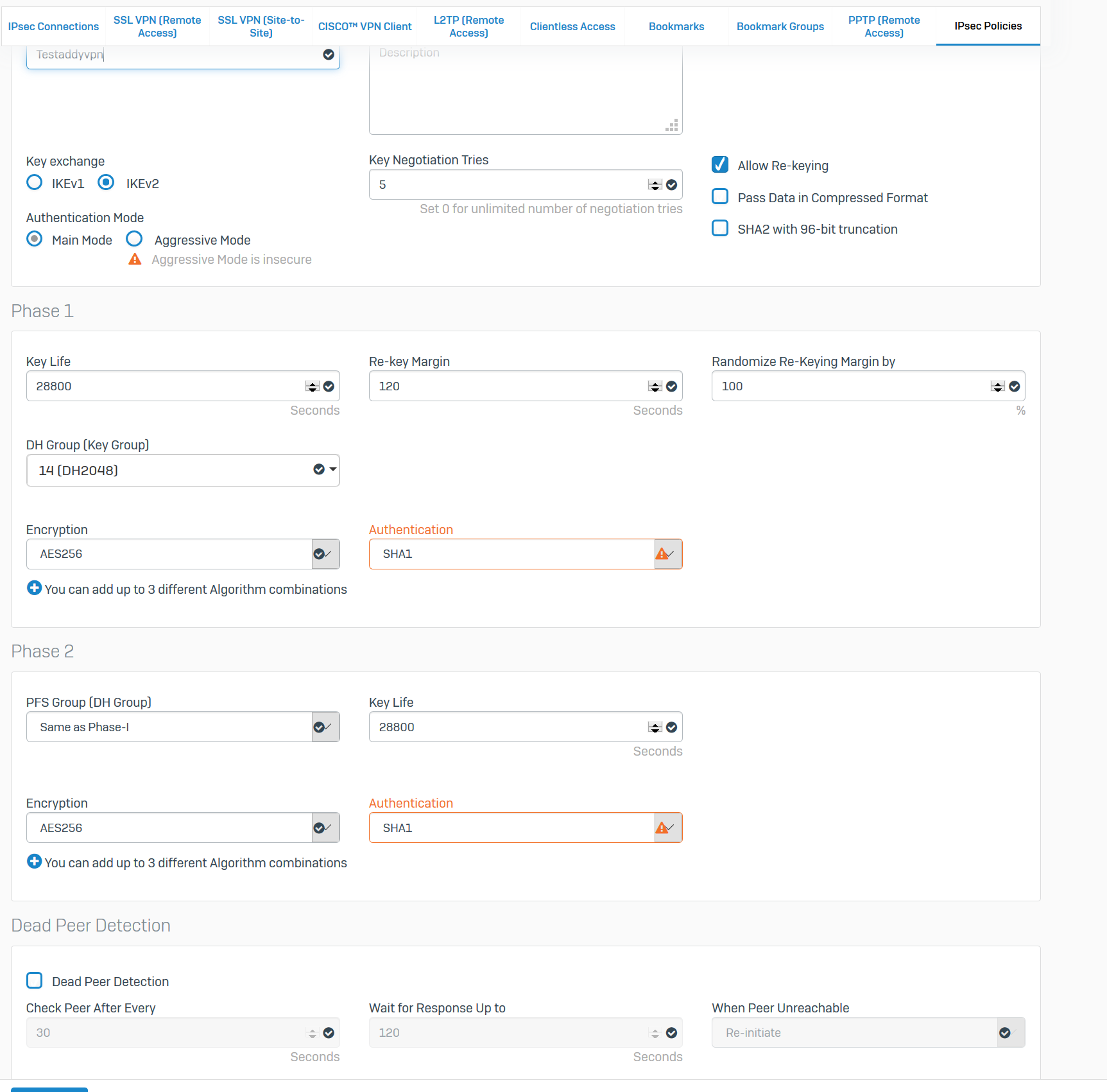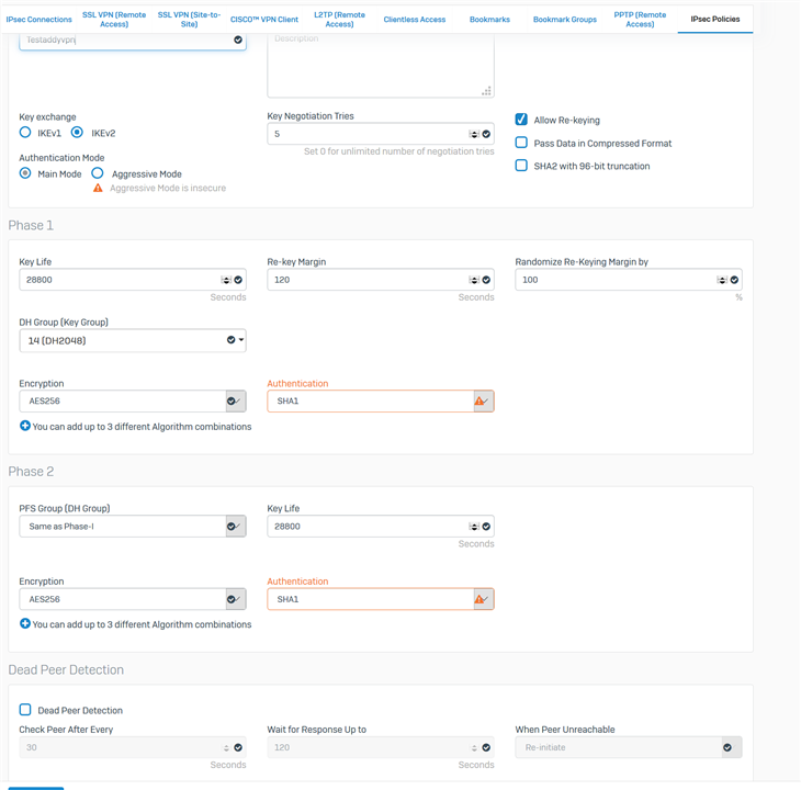 sophosZT: 88.121.253.82...77.157.207.143 IKEv2, dpddelay=30s