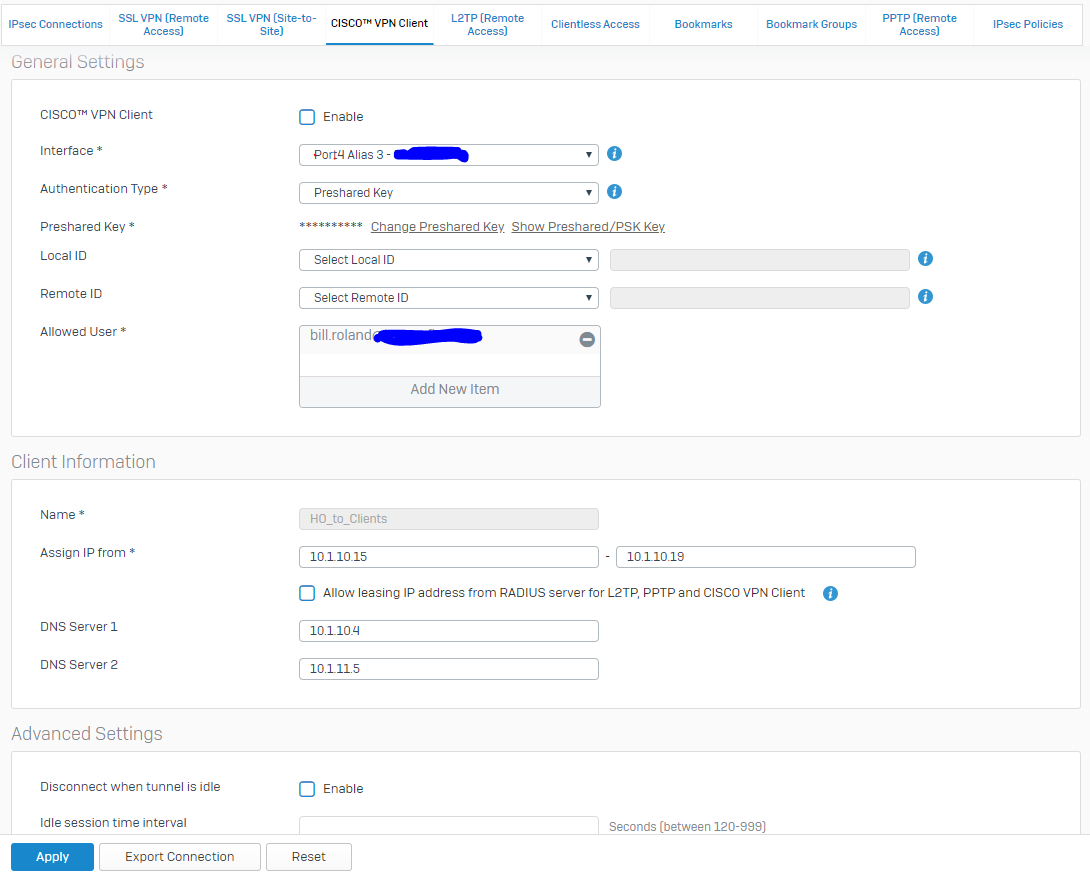 • Can you provide a screenshot of your XG Cisco VPN Client settings?