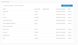 Thanks for sharing the update, and yes, that will have been the issue. your version of SFM isn't yet aware of the new pattern channel, so won't have been fetching the latest patterns for it, and your firewall would have not been informed there were updates available. I'll check on when that will be available in SFM.