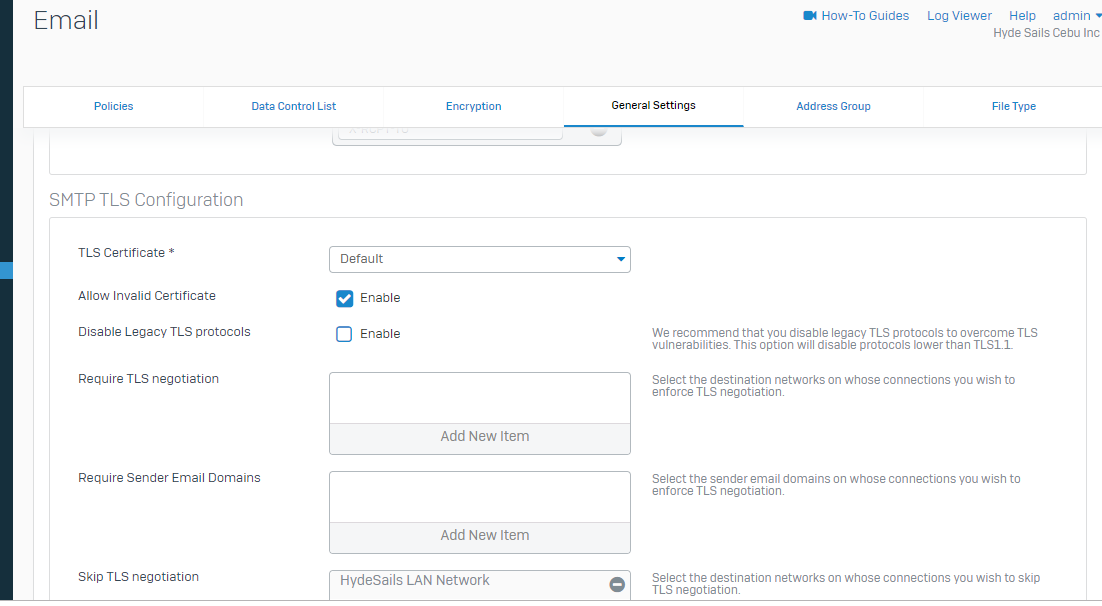 Disable Legacy TLS protocol: still no effect, email are still bounced back to sender.