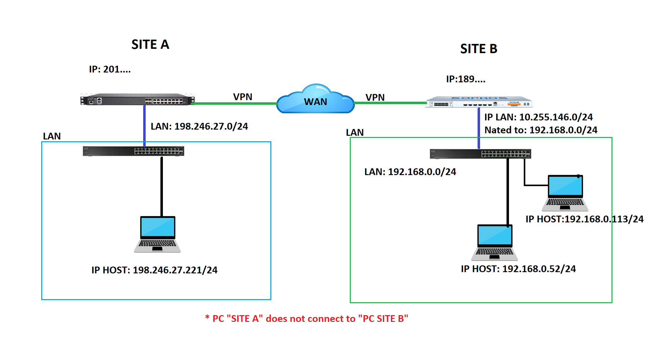 I already have the configuration done but it is not possible to establish connection to the 192.168.0.0/24 network.