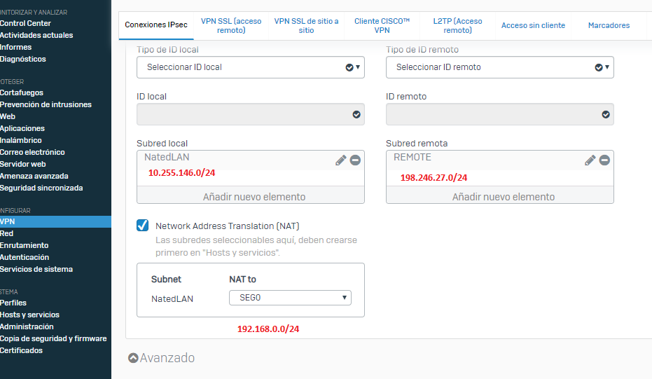 I have already configured a vpn that is correctly linked they ask me to perform a NAT between the ip address 10.255.146.0/24 to the ip address 192.168.0.0/24.