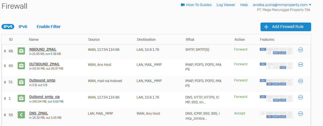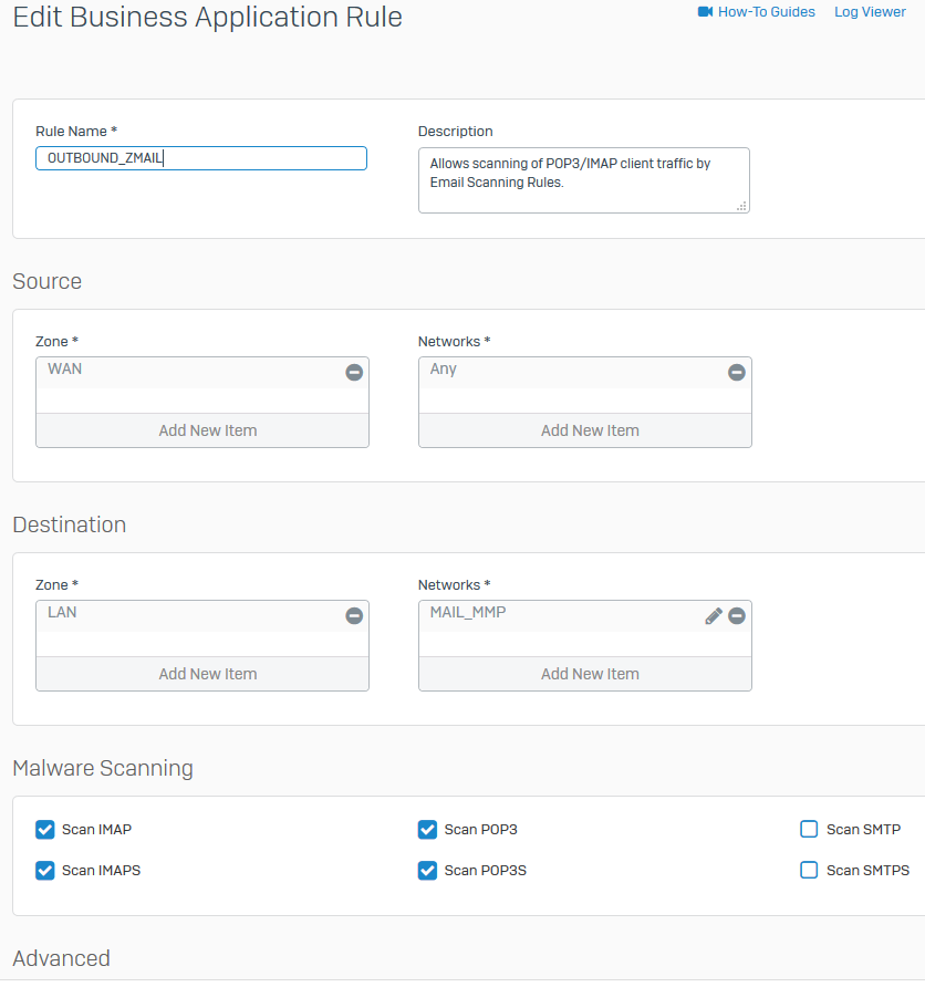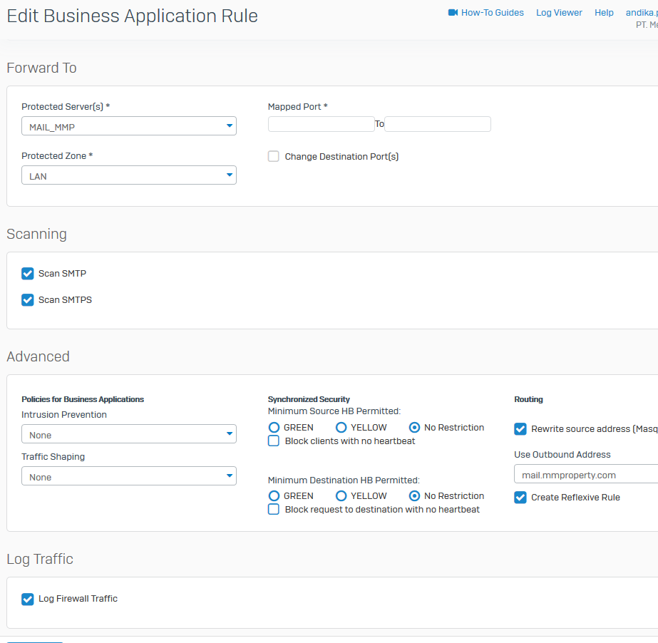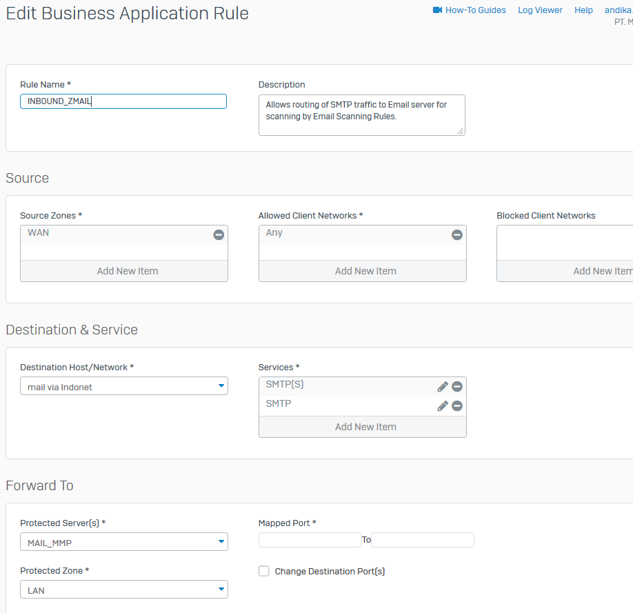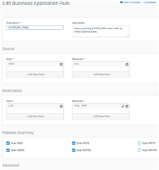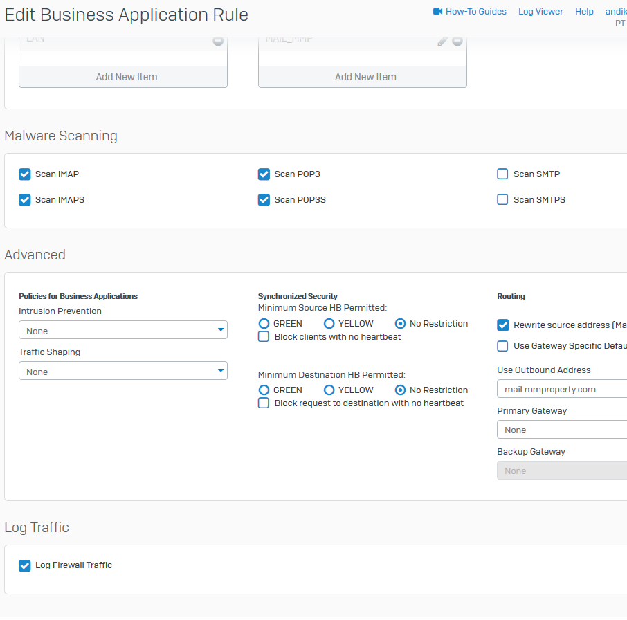I have been trying to do all possibilities on firewall rule using Business Application rule, I'm using the email server (SMTP) and Email client (POP and IMAP)
