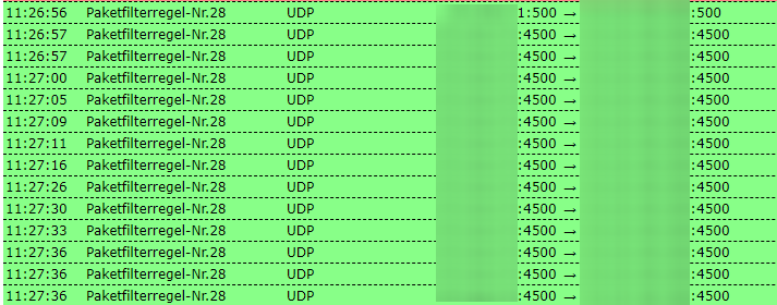Im Log dieser werden auch keine Pakete blockiert wenn ich an dem Client auf verbinden klicke.