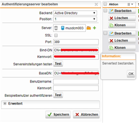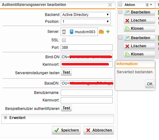 Was mich dennoch wundert: In den AD-Einstellungen bekomme ich (siehe oben) eine valide Verbindung zum AD-Server!? WTF