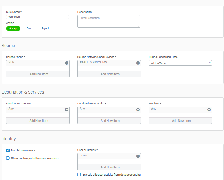 I made 2 Firewall rules vpn to lan and lan to vpn