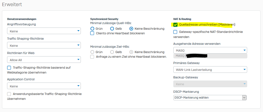 Auf dieser wird NAT (Masquerading) aktiviert.