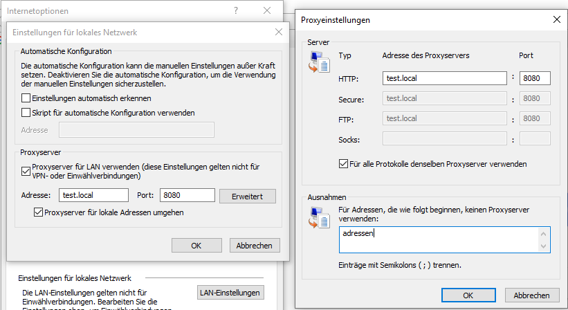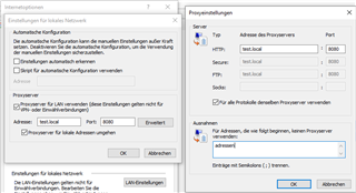 • Kann auch sein, wenn Du sowas wie Sharepoint im Unternehmen hast, dass Du den Proxy für lokale Adressen umgehen musst.
