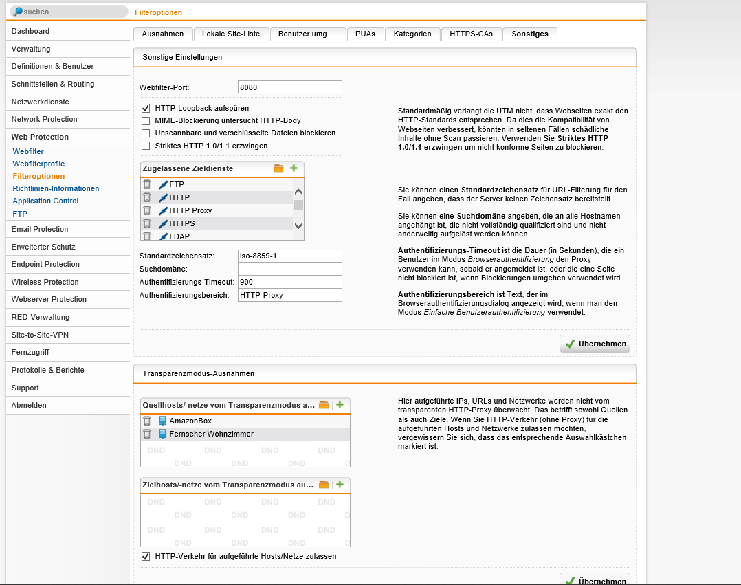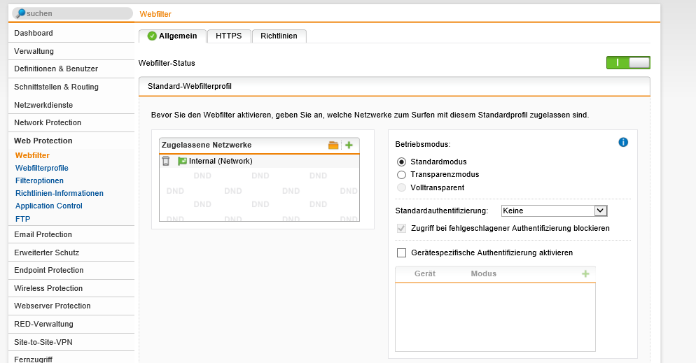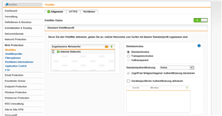 Zugelassene Netzwerke Internal (Network) = Standardmodus - Transparenzmodus-Ausnahmen: