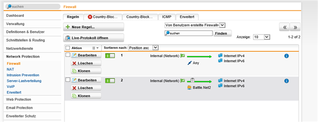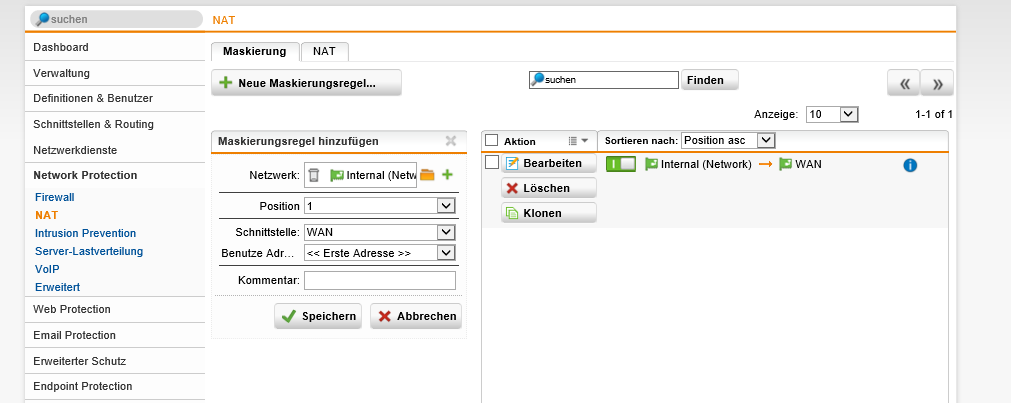Internal (Network) -> Any -> IPv4 / IPv6 - Folgende NAT Regel