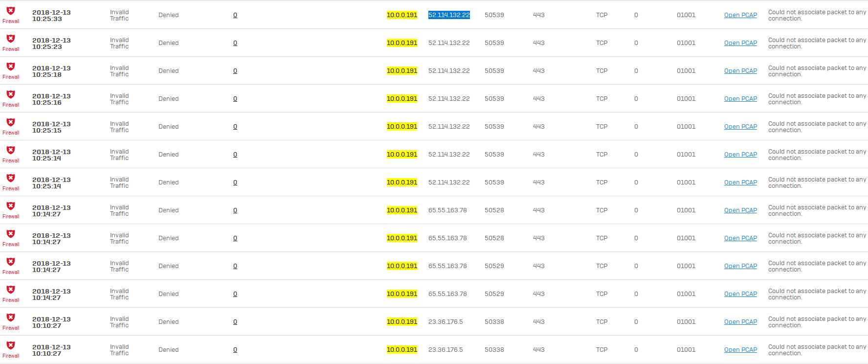 I can see it being blocked in the firewall log. I have checked all the other logs and nothing is being blocked in any of them. I have disabled all technologies on the firewall rule "rule 8" which normally governs this connection. However it says they are all blocked by rule 0. How do i work around this since i cant even see rule ID 0....