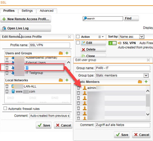 Nun stellt sich die eigentlich Frage, ob das von uns gewünschte Konstrukt über die Box abzubilden ist, denn im Prinzip kommen wir ja von einem Interface der Box und wollen über ein anderes wieder als ssl-vpn Verbindung wieder rein. Ist das möglich? Falls ja was müssen wir bedenken? Welche Informationen benötigt Ihr noch um hier weiter zu helfen?