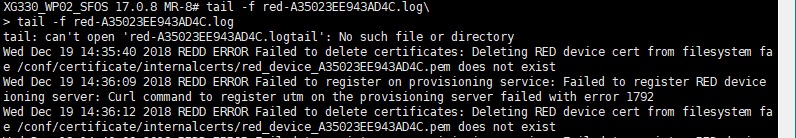 Hello, my customer has RED15 with Sophos XG. I tried to connect the RED with XG but keep rebooting.