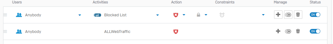 In addition to the exceptions you can see, there are a few hidden additional ones for accessing Sophos itself. You cannot build a policy (even the deny all) that blocks access to Sophos.