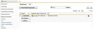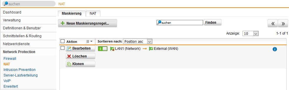 --> Prüf mal, was in den NAT Regeln steht "Network Protection > NAT > MASQ/NAT" (Screenshots helfen ;) )