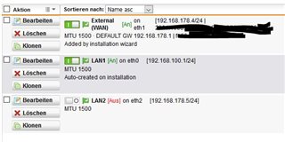 Bitte mach mal nen Screenshot von deinen Netzwerkkarten "Interfaces & Routing > Interfaces" sowie vom Routing "Support > Advanced >Routes Table"