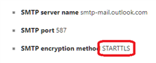 Oddly enough, as per the URL below, Microsoft requests "StartTLS" for the connection security type.