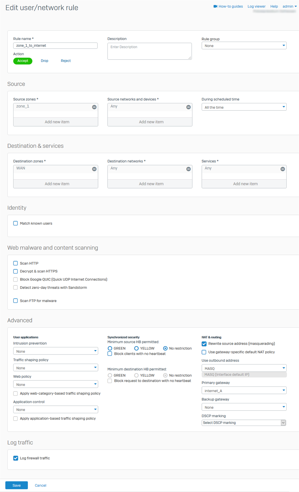 Now I want, that Internet Connection for Zone 1 is always Internet Connection A and for Zone 2 is always Internet Connection B. (I don't want to have a fail over respectively backup connection.