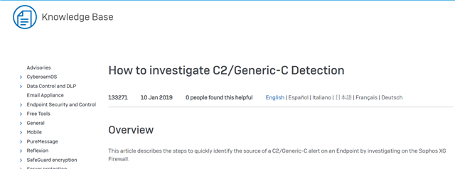 This article describes the steps to quickly identify the source of a C2/Generic-C alert on an Endpoint by investigating the Sophos XG Firewall.