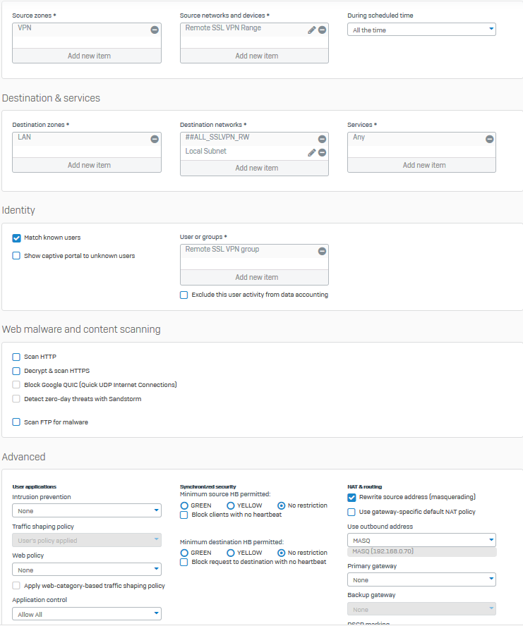 I have a really strange problem. I configures SSL VPN and it is working as supposed to. I can ping interal servers without any problem. But when I try to access a local ressource like a network share or connect to VNC I have problems.
