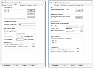 I have two Sophos 230 running one in each location. Both locations are connected via MPLS and are in the same domain. I would like to be able to redirect users in the event of a failure of the appliances, so users of location A could connect to the appliance of location B and vice versa. My question is about the STAS customer. If I configure the image below, should authentication work? I can not validate!