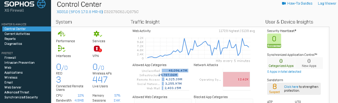 Sophos XG310 (SFOS 17.0.8 MR-8). Cloud.sophos.com, registred, but not appear firewall administration. I need to use the heartbeat syncronization/app filter for new applications.