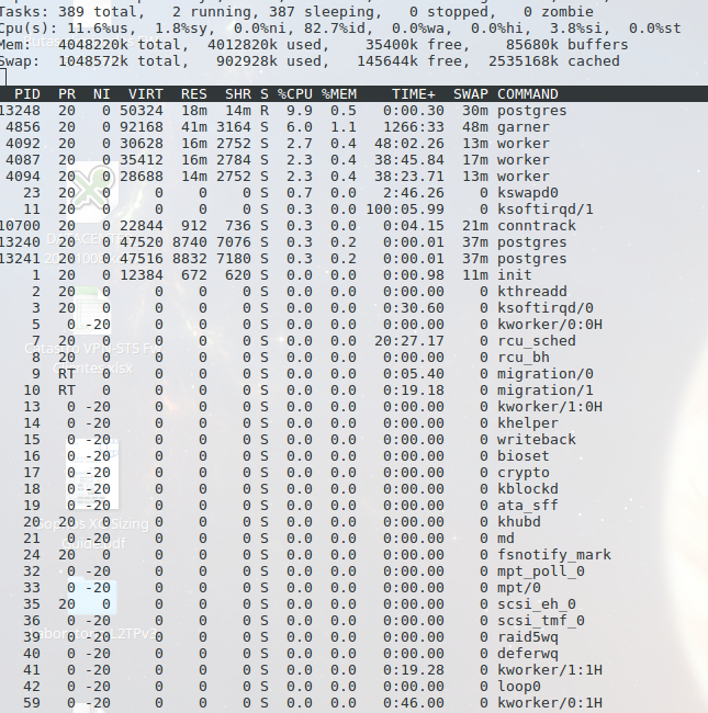 Here is the output of the TOP commands and the difference with the hardware resources usage of the graphic interface that i not understand and is very confuse: