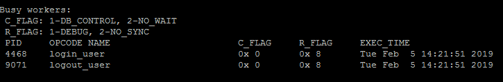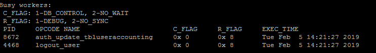 PID OPCODE NAME C_FLAG R_FLAG EXEC_TIME