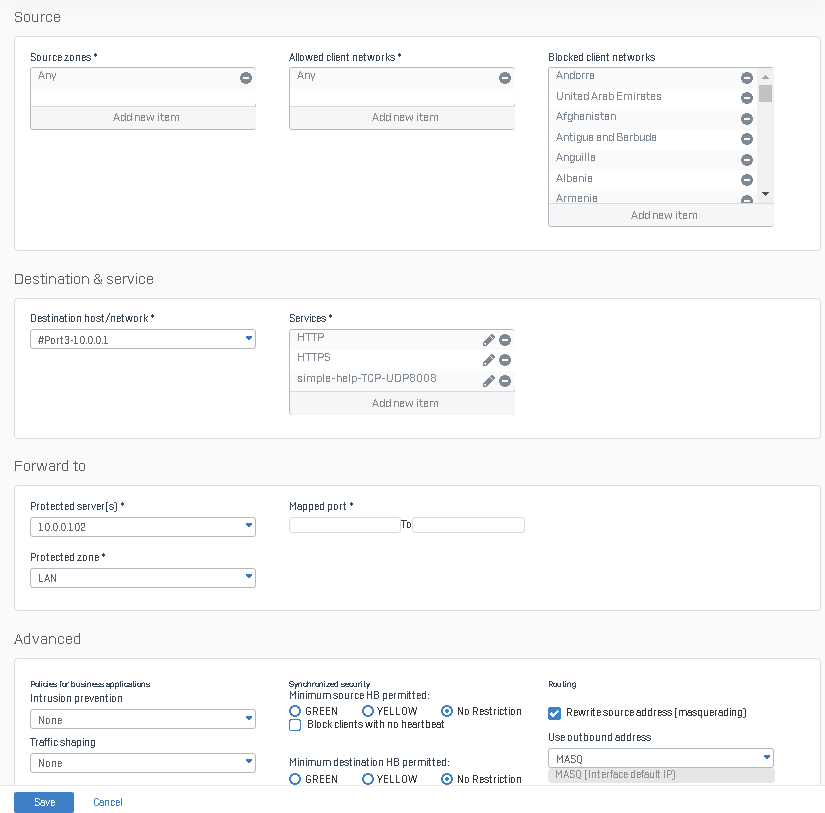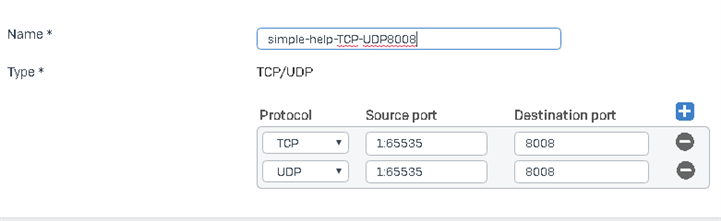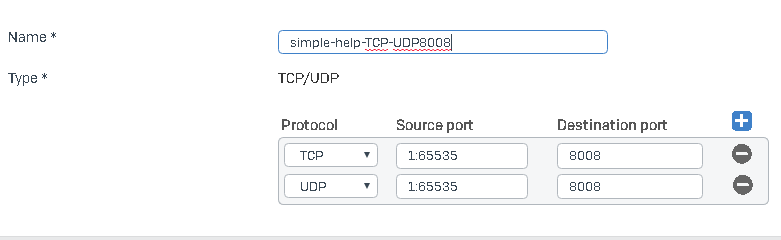 The forwarded services are the standard HTTP and HTTPS, for the customer service TCP/UDP 8008 I placed a snapshot below: