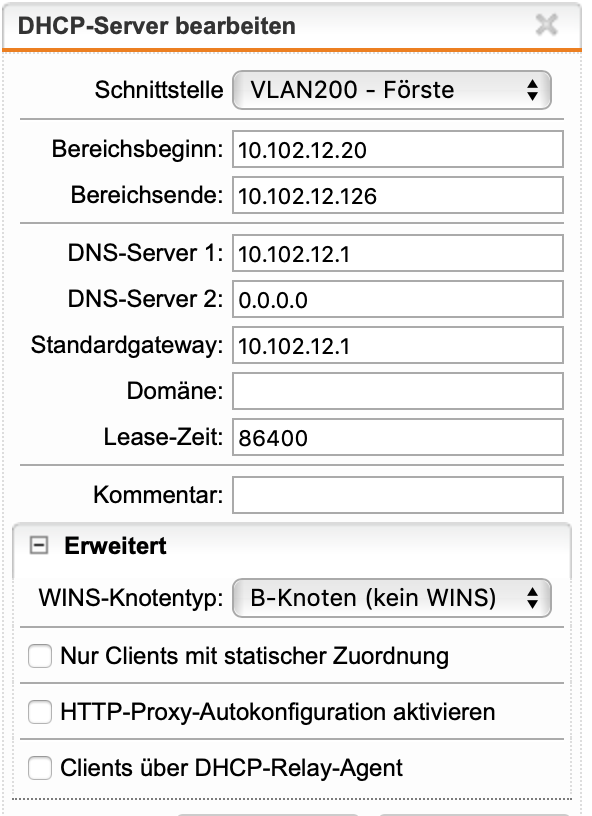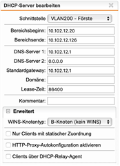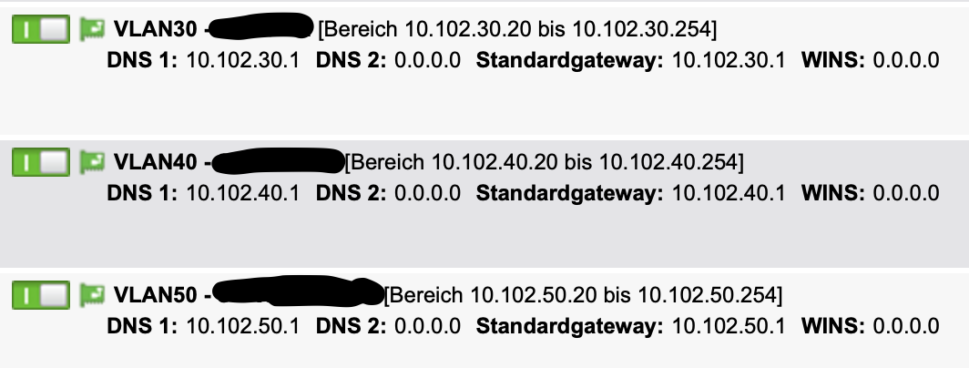 Die entsprechenden Schnittstellen und DHCPs sind ebenfalls angelegt.
