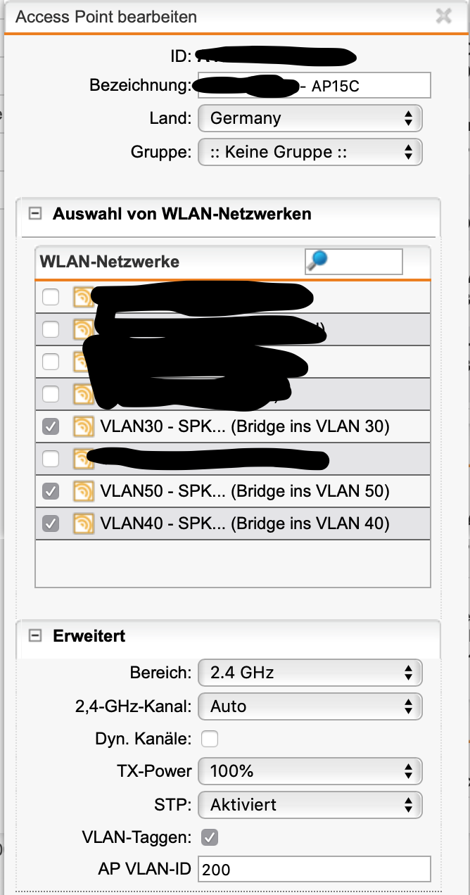 Unter Wireless Protection habe ich die gewünschten WLANs angelegt und dem Accesspoint zugeordnet.