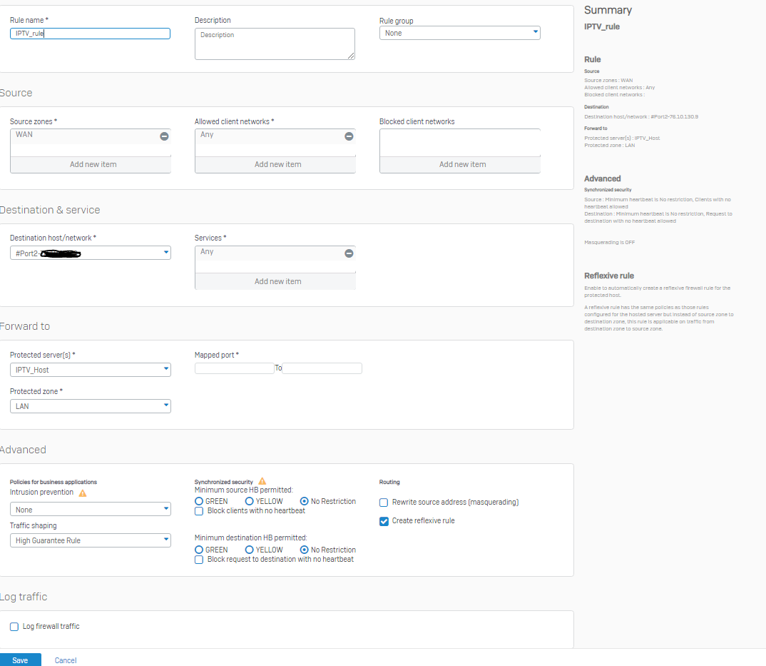 I believe the rule needed for IPTV is LAN to WAN, it does seem you have created a DNAT rule for incoming connections. We would like to know if you are using a server on your LAN that your IPTV would connect to or using the internet as a source.